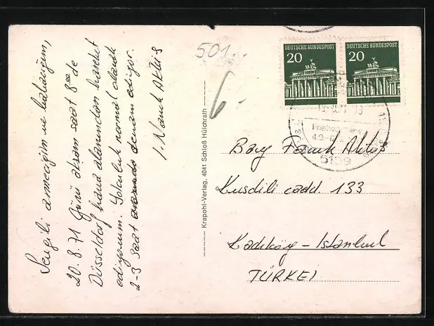 alte Ansichtskarte, gelaufen 1971, Stecknadelloch oben mittig, guter Zustand