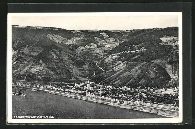 AK Kestert Rh., Stadt mit Bergen, Dampfer