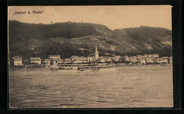 AK Kestert a. Rhein, Uferpartie mit Kirche