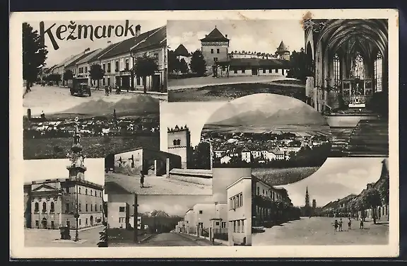 AK Kezmarok, Ortsansicht, Strassenpartie, Innenansicht der Kirche