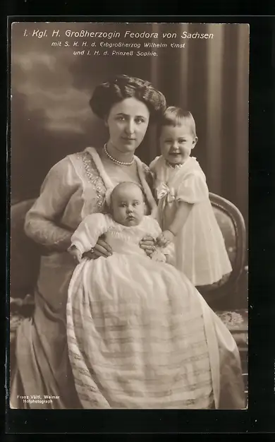 AK Kgl. H. Grossherzogin Feodora von Sachsen mit ihren Kindern