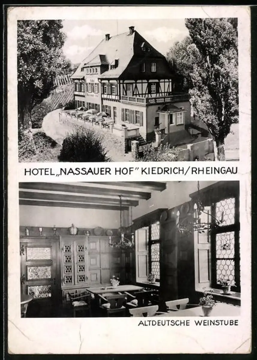 AK Kiedrich / Rheingau, Hotel Nassauer Hof, altdeutsche Weinstube