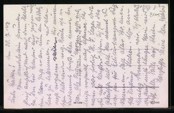 Personenbezogene Daten auf der Rückseite der Karte wurden durch blauen Textmarker unkenntlich gemacht. Die blauen Stellen sind auf die Vorderseite durchgeweicht und wirken sich negativ auf das Postkartenfoto aus