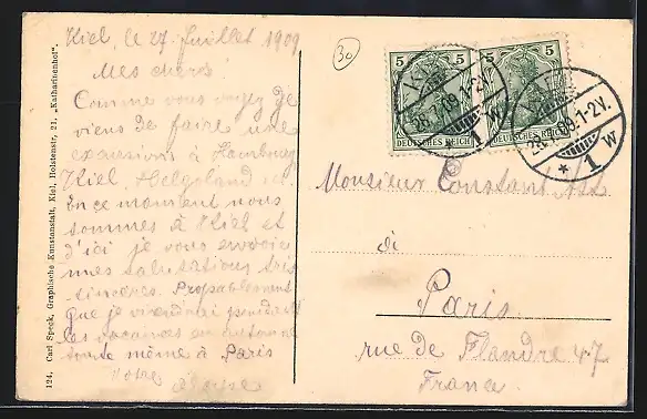 gelaufen 1909, Eckknick re. oben, guter Zustand