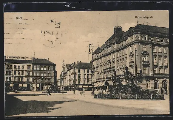 AK Kiel, Bahnhofsplatz mit Bahnhofs-Hotel