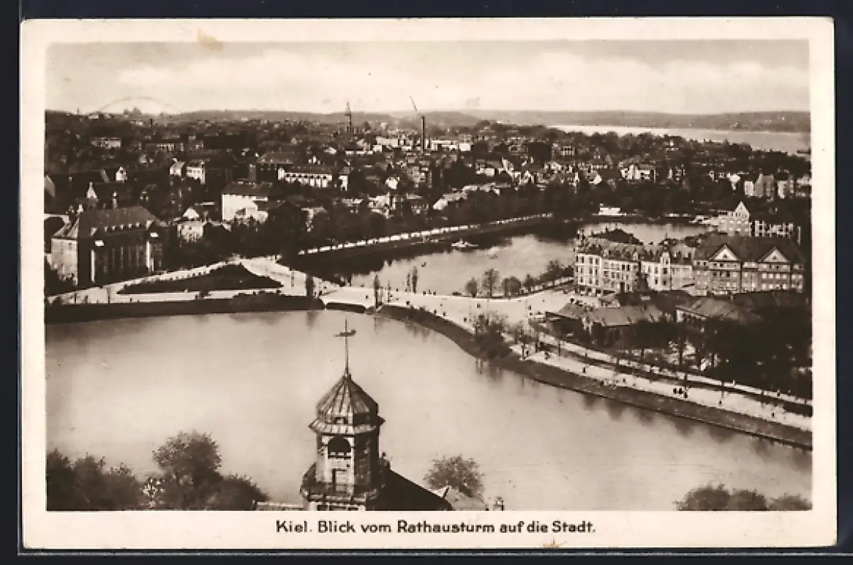 AK Kiel, Blick vom Rathausturm auf die Stadt