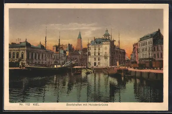 AK Kiel, Bootshafen mit Holstenbrücke, Boote