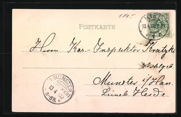 alte Ansichtskarte, gelaufen 1900, guter Zustand
