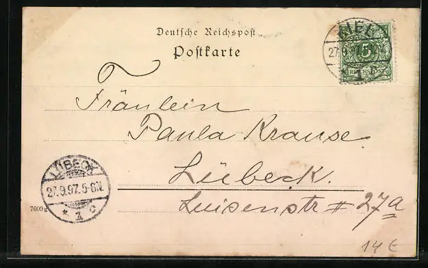 alte Ansichtskarte, gelaufen 1897, guter Zustand