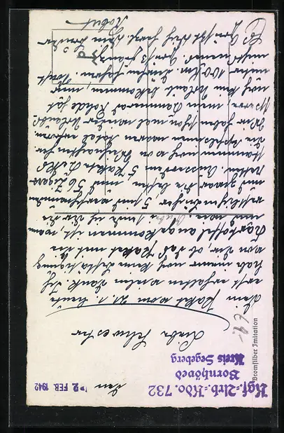 Personenbezogene Daten auf der Rückseite der Karte wurden durch blauen Textmarker unkenntlich gemacht. Die blauen Stellen sind auf die Vorderseite durchgeweicht und wirken sich negativ auf das Postkartenfoto aus