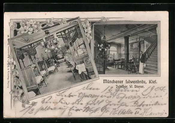 AK Kiel, Gasthaus Münchener Löwenbräu, Inh. W. Diener, Innenansicht