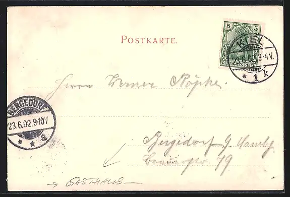 alte Ansichtskarte, gelaufen 1902, Stempelspur, guter Zustand