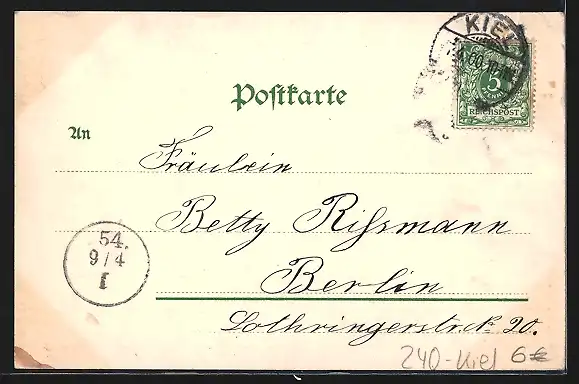 alte Ansichtskarte, gelaufen 1900, Eckknicke li., Stempelspur, guter Zustand