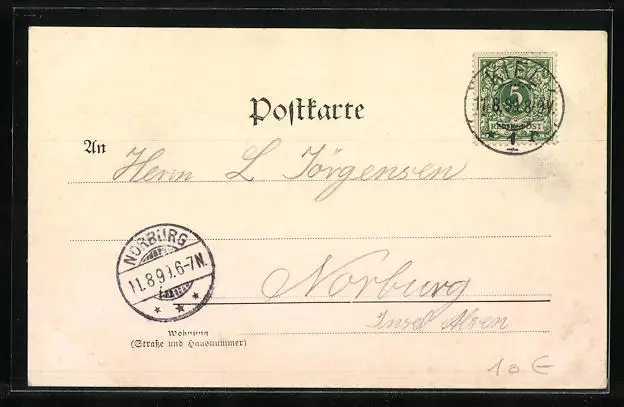 alte Ansichtskarte, gelaufen 1899, guter Zustand