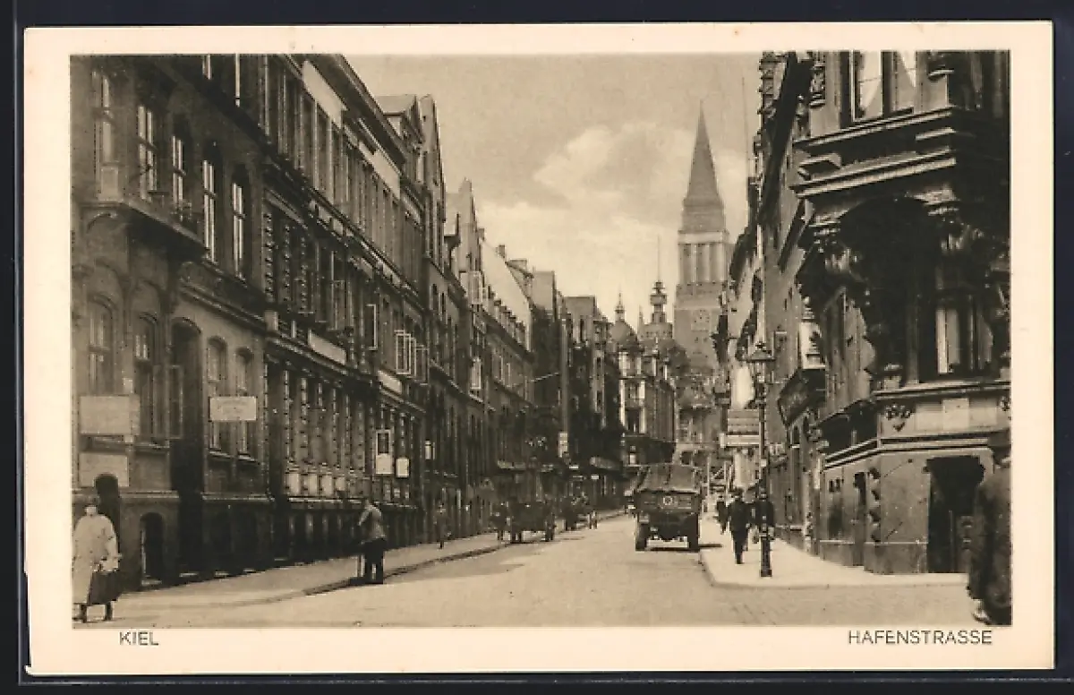 AK Kiel, Hafenstrasse mit Geschäften