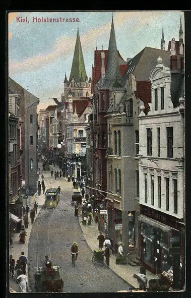 AK Kiel, Holstenstrasse mit Strassenbahn