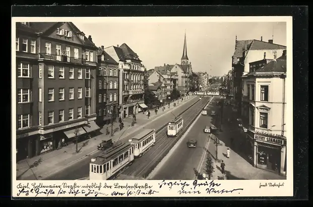 AK Kiel, Holtenauer Strasse mit Strassenbahnen
