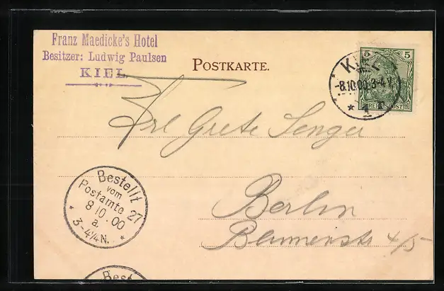 alte Ansichtskarte, gelaufen 1900, guter Zustand