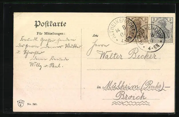 alte Ansichtskarte, gelaufen 1907, Eckknick re. oben, guter Zustand