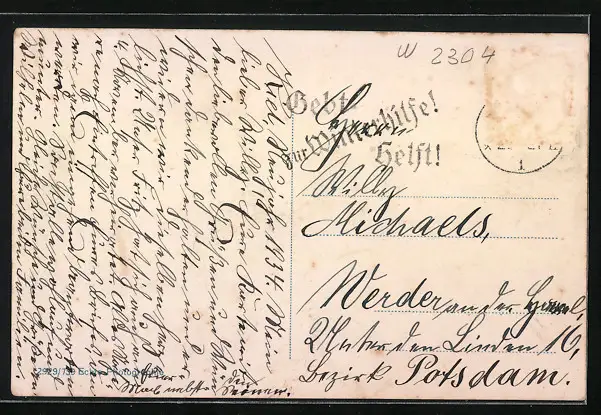 alte Ansichtskarte, gelaufen 1934, Briefmarke entfernt, guter Zustand