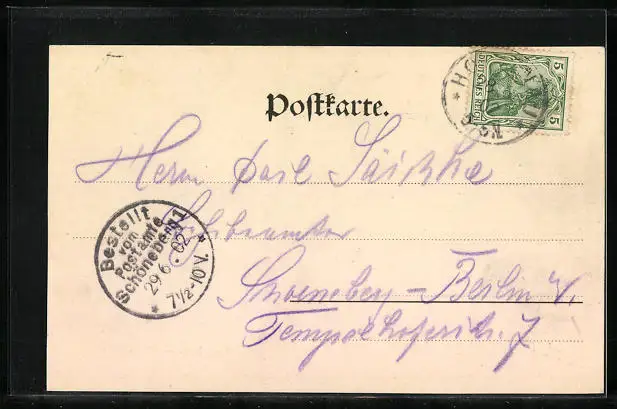 alte Ansichtskarte, gelaufen 1902, Stempelspur, guter Zustand