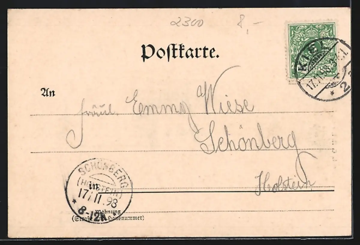 alte Ansichtskarte, gelaufen 1898, Stempelspur, guter Zustand