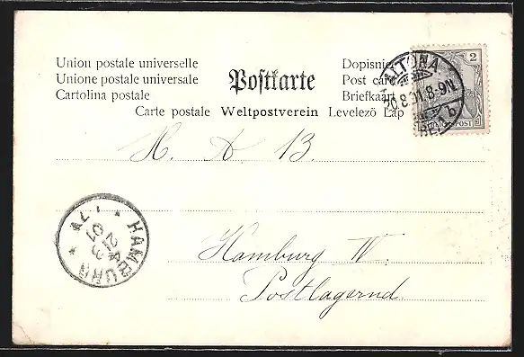 alte Ansichtskarte, gelaufen 1901, Eckknick re. unten, guter Zustand