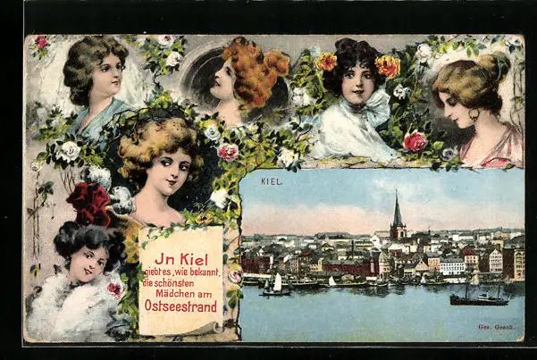 AK Kiel /Ostsee, Teilansicht, Damenportraits