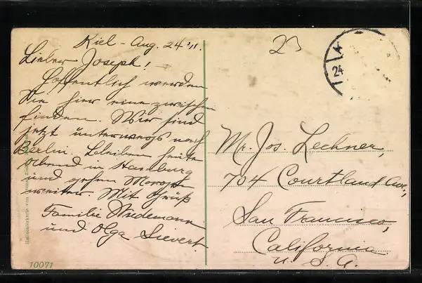 gelaufen 1911, Briefmarke entfernt, guter Zustand