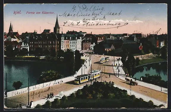 AK Kiel, Partie am Kütertor mit Strassenbahn