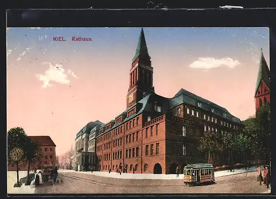 AK Kiel, Rathaus mit Strassenbahn