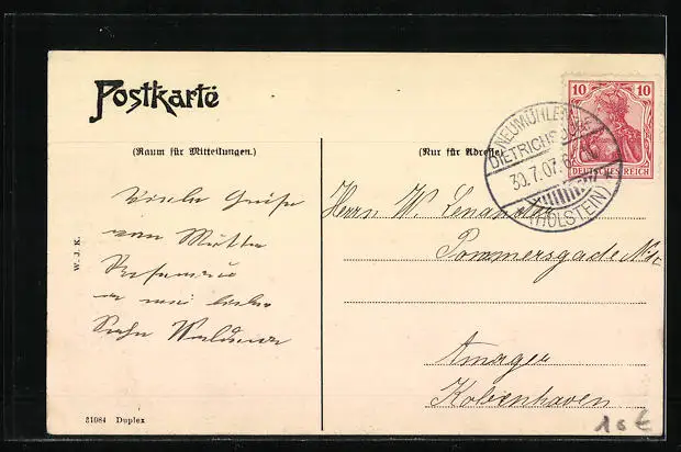 alte Ansichtskarte, gelaufen 1907, guter Zustand