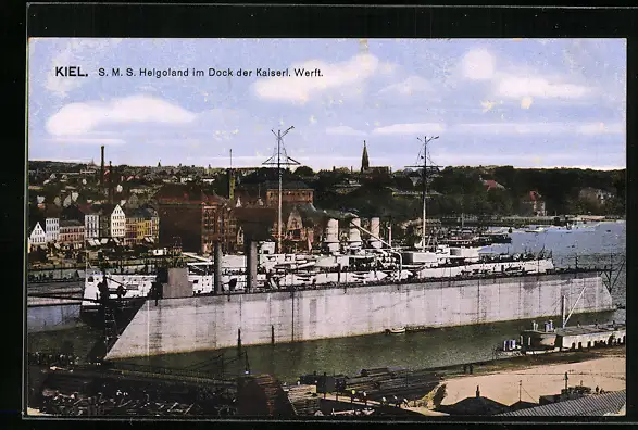 AK Kiel, S. M. S. Helgoland im Dock der Kaiserl. Werft
