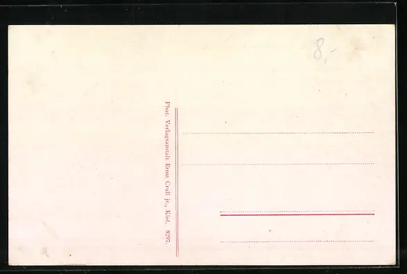 Personenbezogene Daten auf der Rückseite der Karte wurden durch blauen Textmarker unkenntlich gemacht. Die blauen Stellen sind auf die Vorderseite durchgeweicht und wirken sich negativ auf das Postkartenfoto aus