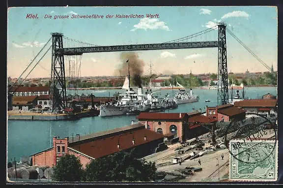AK Kiel, Schwebefähre der Kaiserl. Werft, Schiffe im Hafen
