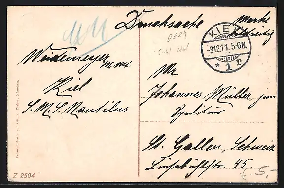 alte Ansichtskarte, gelaufen 1911, Eckknick re. oben, guter Zustand