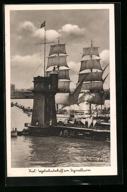 AK Kiel, Segelschiff am Signalturm, Leuchtturm