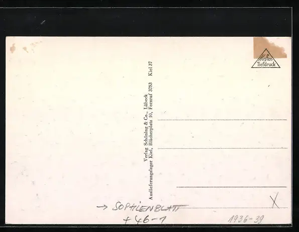 alte Ansichtskarte, ungelaufen, rückseitig Klebe- und Papierreste, guter Zustand