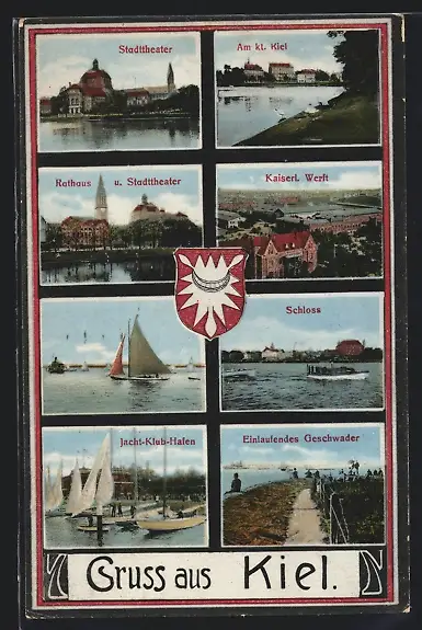 AK Kiel, Stadttheater, Schloss, Einlaufendes Geschwader