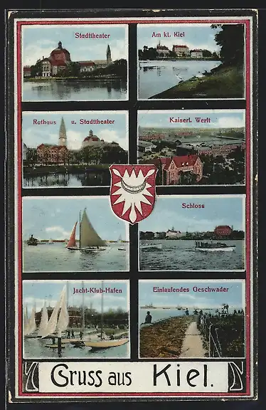 AK Kiel, Stadttheater, Schloss, Einlaufendes Geschwader