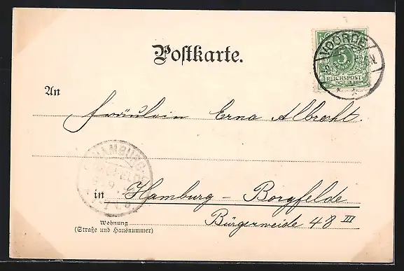 alte Ansichtskarte, gelaufen 1898, Stempelspur, guter Zustand