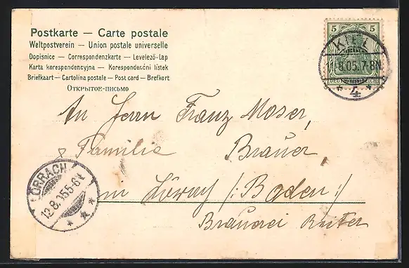 alte Ansichtskarte, gelaufen 1905, Bugspur mittig, guter Zustand