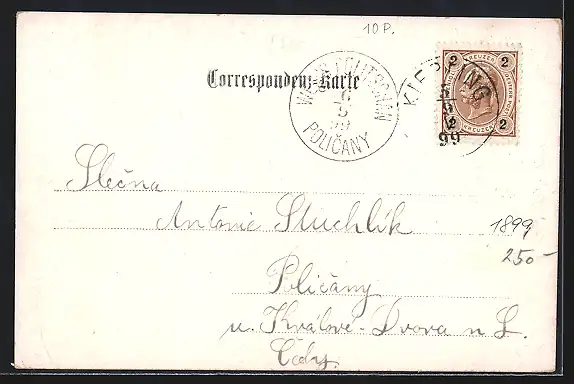 alte Ansichtskarte, gelaufen 1899, Eckknick re. unten, guter Zustand