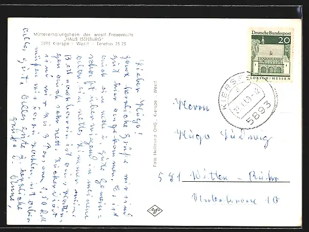 AK Kierspe i. Westf., Müttererholungsheim der westf. Frauenhilfe Haus Isenburg