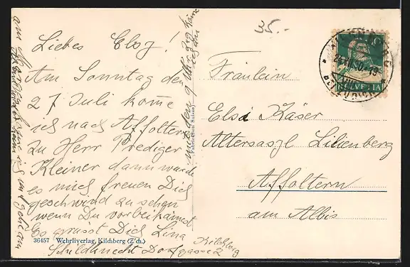 AK Kilchberg, Ortspanorama mit Kirche, Gedicht