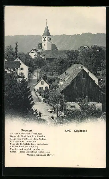 AK Kilchberg, Teilansicht mit Kirche, Gedicht Requiem