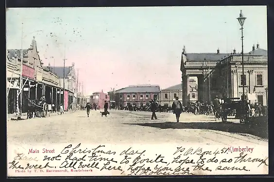 AK Kimberley, Main Street with Foot Traffic and Horse Carriages