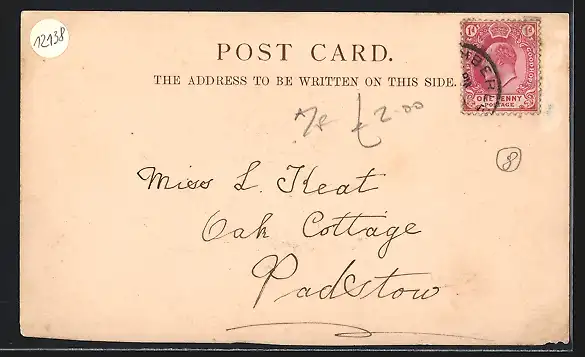 alte Ansichtskarte, gelaufen, rückseitig Oberflächenschaden, unten beschnitten, leichter Kantenschaden li. unten