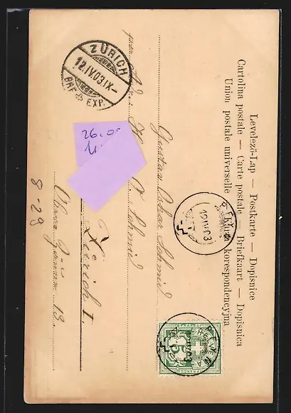 gelaufen 1903, rückseitig Klebe- und Papierreste, guter Zustand