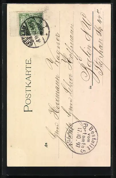 alte Ansichtskarte, gelaufen 1897, Stempelspur, guter Zustand